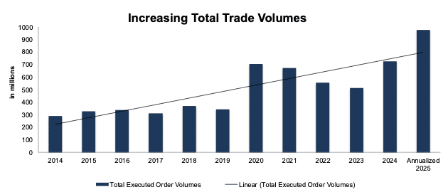 Figure 3: Interactive Brokers’ Total Executed Trade Volumes: 2014 – Annualized 2025