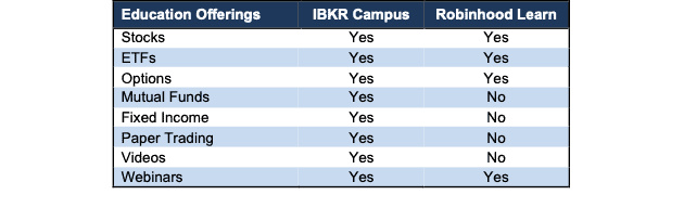 Figure 5: IBKR Campus and Robinhood learn Education Offerings Comparison