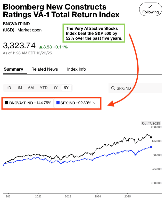 Bloomberg New Constructs Ratings VA-1 Index ("The Very Attractive Stocks Index")