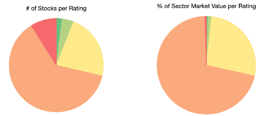 Just 6% of stocks in the entire sector earn an Attractive-or-better rating and those stocks make up just 2% of the sector market cap.
