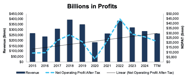 This company’s profits fluctuate with oil prices. But even in “down” years, the company still generates billions in profit.