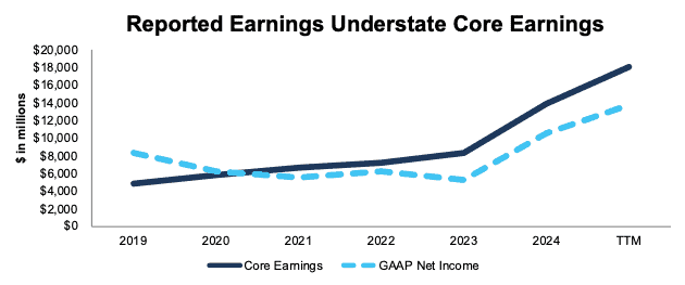 The company has the 15th highest trailing-twelve months (TTM) Core Earnings of all S&P 500 companies.