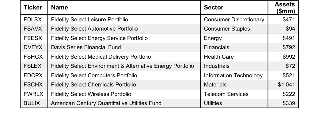 Figure 1: The Best Mutual Fund in Each Sector