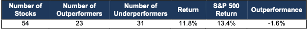 Performance includes stocks in the Model Portfolio in 2025 as well as those removed during the same time (14 stocks).