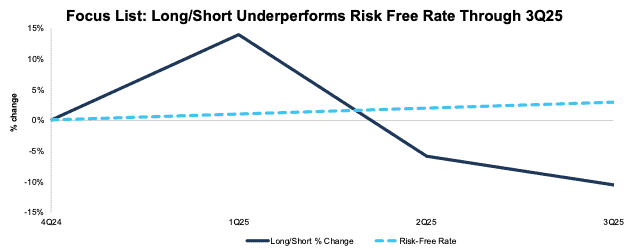 Figure 2: Focus List Stocks: Long/Short Performance vs. Risk-Free Rate: First Nine Months of 2025