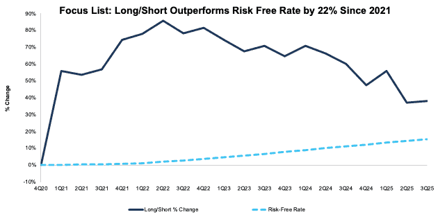 Figure 1: Focus List Stocks: Long/Short Performance vs. RFR: 2021 Through First Nine Months of 2025