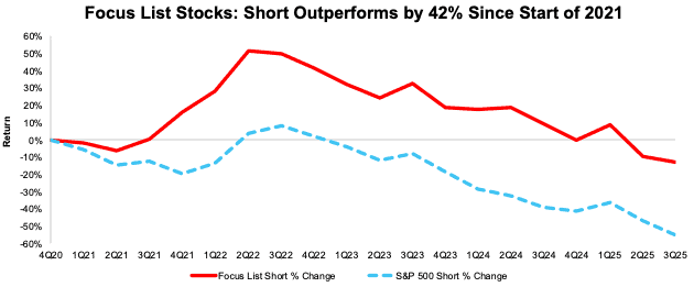 Figure 2: Focus List Stocks: Short vs. S&P 500 in First Nine Months of 2025