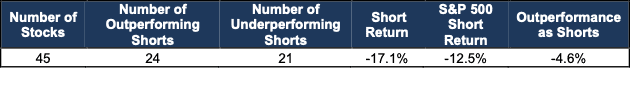 Figure 3: First Nine Months of 2025 Performance of the Focus List Stocks: Short Model Portfolio