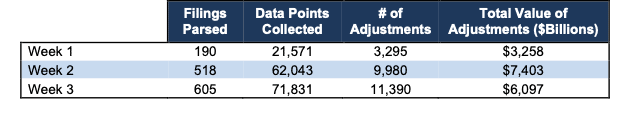 - 4,461 balance sheet adjustments with a total value of $2.6 trillion