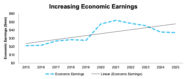 Economic earnings rose from $21 million to $37 million over the same time. See Figure 2.