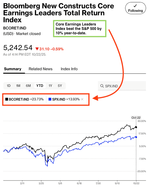 Figure 4: Bloomberg New Constructs Core Earnings Leaders Index Outperforms the S&P 500 YTD