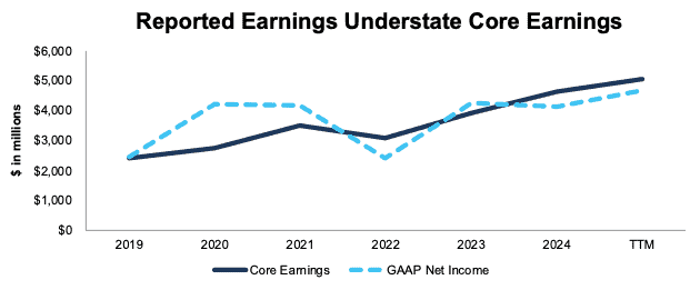 Figure 1: PayPal’s Core Earnings vs. GAAP Net Income Since 2019