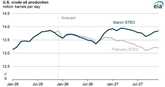 It’s no secret that countries across the globe are producing more oil and gas – a point we’ve highlighted in recent reports such as Energy Demand Isn’t Going Away, But This Opportunity Might. The U.S. Energy Information Administration (EIA), in its March 2026 Short-Term Energy Outlook, projects U.S. crude oil production to continue expanding to an average of 13.6 million barrels per day (b/d) in 2026 and 13.8 million b/d in 2027. See Figure 1.