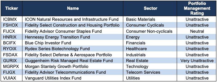 Figure 2: Sector Mutual Funds with the Worst Holdings