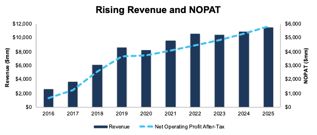 Amid rising energy demand and higher volumes, this company has grown revenue and net operating profit after-tax (NOPAT) by 18% and 28% compounded annually since 2016 (earliest data available). See Figure 3.