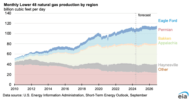 Furthermore, the EIA projects U.S. monthly natural gas production to grow from 112.9 billion cubic foot (Bcf) in December 2024 to 115.1 Bcf in December 2026. See Figure 1.