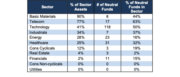 Figure 8: Neutral ETFs & Mutual Funds by Sector