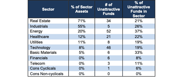 Figure 11: Unattractive ETFs & Mutual Funds by Sector