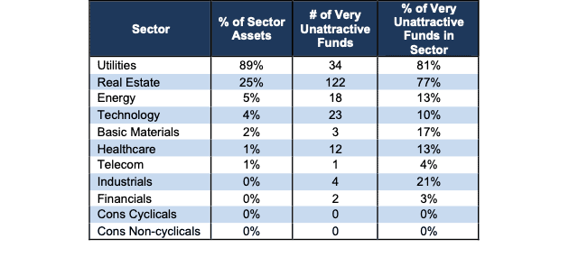 Figure 12: Very Unattractive ETFs & Mutual Funds by Sector