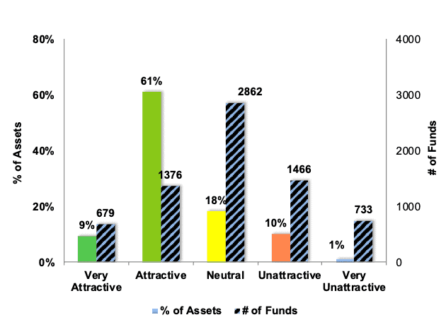This table shows that only the best of the best funds get our Very Attractive Rating: they must hold good stocks AND have low costs.