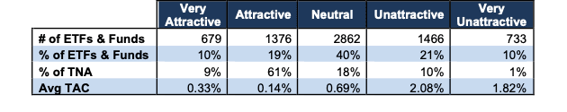 Figure 3 offers additional details on the quality of the investment style funds. Note that the average total annual cost of Very Unattractive funds is over five times that of Very Attractive funds.