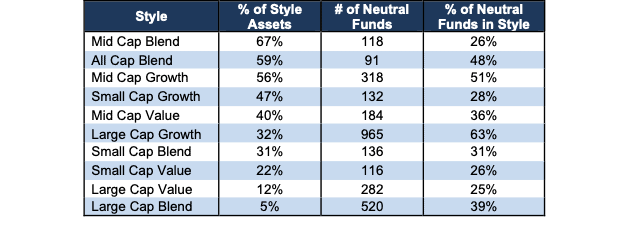 Figure 8: Neutral ETFs & Mutual Funds by Investment Style