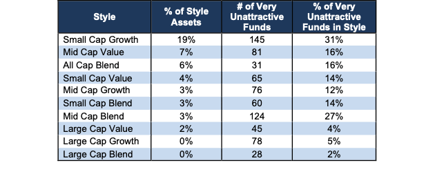 Figure 11: Unattractive ETFs & Mutual Funds by Investment Style