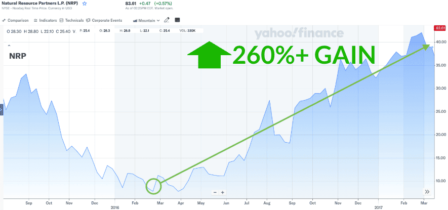 Or a 260% return over 1 year after NRP met our proprietary Predictive Earnings Metric.