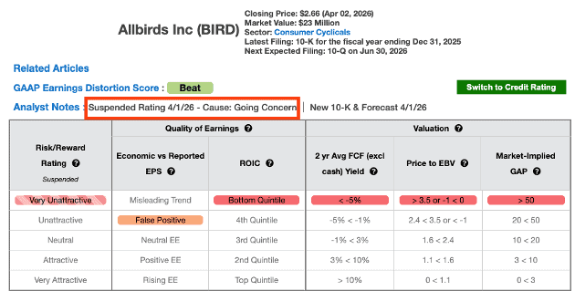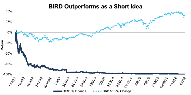 Regular readers know that we warned of the dangers of investing in Allbirds (BIRD) well before its IPO. In case you’re not aware, here’s our track record: